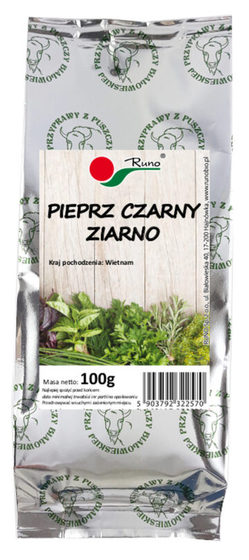 • pieprz ziołowy Białowieski i pieprz czarny Ziarno – przyprawy o charakterystycznym smaku;